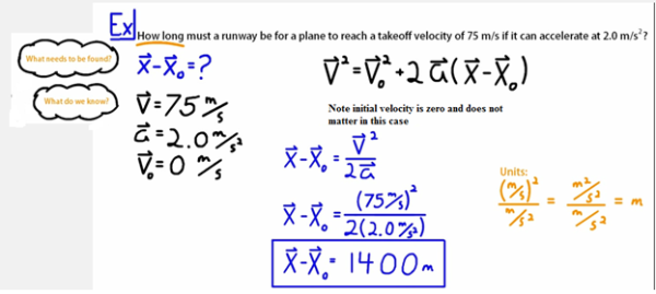 Here is a relationship between final velocity, initial velocity, acceleration and the distance travelled ∆x. x-xo is also